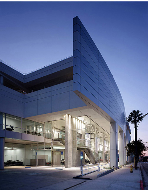 Glendale Beautiful 2010, Community Beautification, Glendale, CA Publication 1000 x Architecture of the Americas, Verlagshaus Braun Publications, 2008 2000 Architects, Images Publishing Group 2006 • New, 4 level, 200,000 SF auto dealership and service center for Pacific BMW, located in Glendale, CA. • Exterior facade integrates exposed concrete, clear glass, metallic silver aluminum, smooth white plaster and stainless steel cables. • 400’ long structure spans over Windsor with the new car showroom and customer service on the ground floor of Phase 1 to the north and the Certified Pre-Owned Sales and Customer Parking on the ground floor of Phase 2. • Some 50 service bays are provided on the 2nd level along the parts department and administrative offices. • 3rd and 4th levels provide parking for service, sales inventory and employees. |